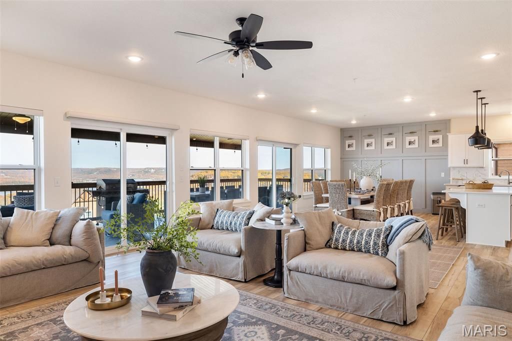 UNMATCHED TABLE ROCK LAKE VIEWS | FULLY FURNISHED WILDERNESS MOUNTAIN RETREAT This fully furnished, turnkey lakeview lodge showcases sweeping panoramic views of Table Rock Lake and offers nearly 5,000 square feet of thoughtfully designed living space. With 10 bedrooms and 9 bathrooms, the home provides flexibility and room to comfortably accommodate larger groups while maintaining privacy and functionality throughout. The expansive open-concept floor plan is ideal for gathering and entertaining, featuring dual stoves/ranges, generous living and dining areas, and seamless access to two oversized decks where the lake views take center stage. Interior highlights include two themed bunk rooms, a game and media room, and multiple spaces designed for both relaxation and enjoyment. Located just steps from the resort's amenity core, Wilderness Mountain features indoor and outdoor pools, water slides, a lazy river, pickleball and basketball courts, playgrounds, and a walking trail leading to the lake. Conveniently positioned near the Port of Kimberling, Silver Dollar City, the Branson entertainment district, and year-round Ozarks recreation, this property offers an exceptional combination of views, space, amenities, and location in one of Wilderness Mountain's most sought-after settings.