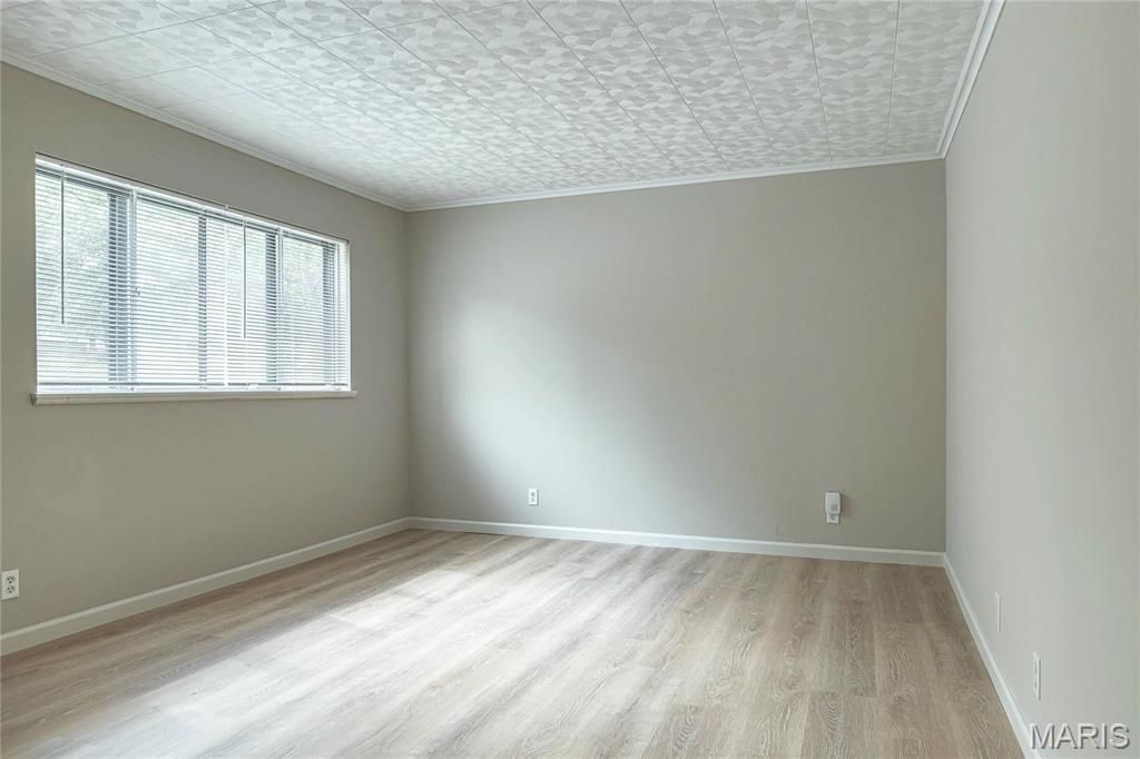 Beautifully renovated ranch home on a large lot in a prime West County location. Welcome home to this light-filled, move-in-ready ranch situated on a generous 1/3-acre lot. The updated interior features wood-style flooring, modern lighting, fresh paint, and blinds throughout. The spacious kitchen offers an abundance of maple cabinetry, gas range, microwave, dishwasher, high-end refrigerator with water and ice in the door, and a stunning tile backsplash. Enjoy a beautifully updated bathroom with a tiled shower and contemporary vanity. All three bedrooms include closet systems for optimal organization. Additional highlights include a stainless steel full-size washer and dryer, a large walk-in cedar closet, and new windows for energy efficiency and comfort. Step outside to a spectacular, fully fenced backyard-ideal for relaxing or entertaining-with a horseshoe pit, utility shed, and plenty of room to play. An attached oversized garage with electric opener plus off-street parking adds convenience. Located in a highly desirable West County neighborhood surrounded by higher-end homes, and within walking distance to top-rated Rockwood schools, plus easy access to shopping and dining. Prefer 2-year lease and minimum 700 credit score. Available for your immediate move-in.